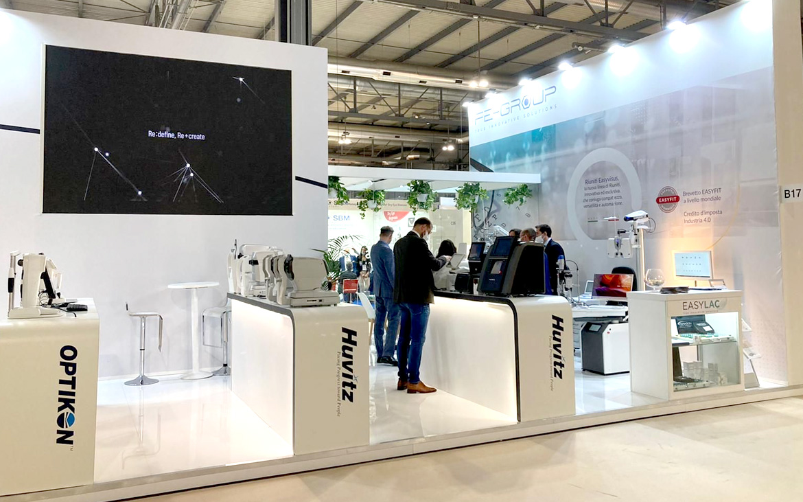 Il Gruppo Frastema, specializzato nella fornitura e vendita di prodotti, strumenti e sistemi complessi per il settore dell'ottica e dell'oftalmica, ci ha chiesto di lavorare alla grafica del suo stand a MIDO 2022, la Fiera dell'Eyewear di Milano.